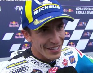Маркез је на Гресинију победио у Арагону на прошлој трци и сада је успео да понови феноменалан резултат, победи Франческа Бањају и тријумфује у Сан Марину, док је трећи био „Бештија“ Енеа Бастијанини.