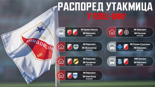 Фудбалери Војводине у плеј-оф улазе као другопласирана екипа на табели Моцарт Бет Супер лиге Србије и до краја првенства одиграће четири меча на свом „Карађорђу“.